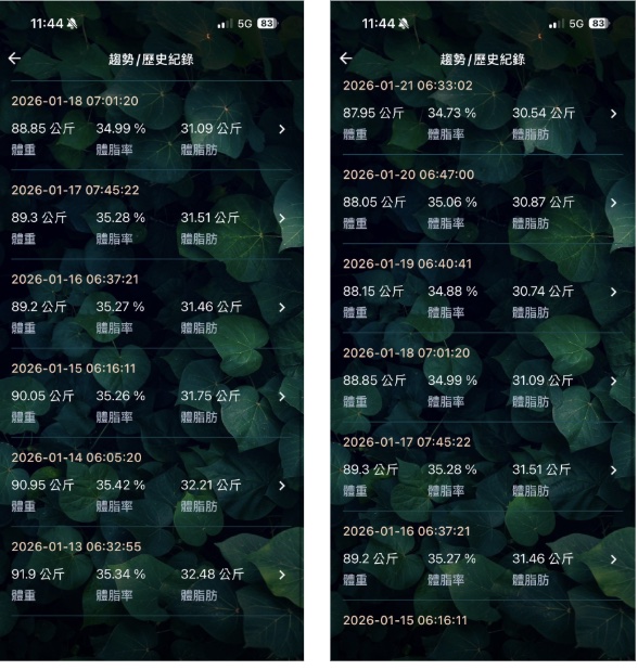 累計 86 天下來,他整整卸下了 20.2 公斤 的負擔,其中 12.1 公斤 都是純脂肪!